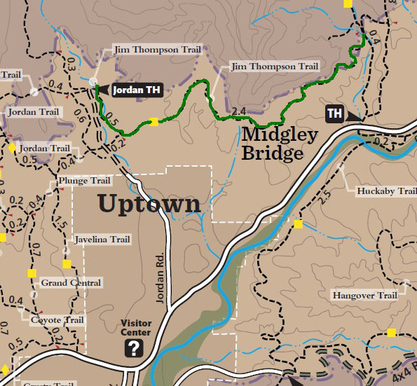 | Desciption | Cette randonnée procure de belles vues lorsqu'on est notamment à la base de steamboat rock. Jim thompson un habitant de oak creek arrivé en 1876 qui s'est établit par la suite à Sedona construisit cette route pour relier ces deux maisons. initiallement elle était au niveau de la rivière mais fut emportée par une innondation. il décida alors de la reconstruire plus haut en 1887. |