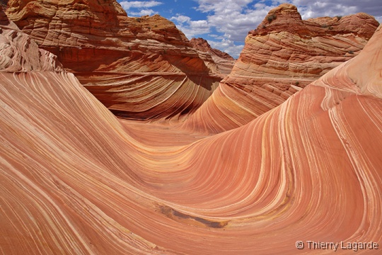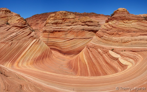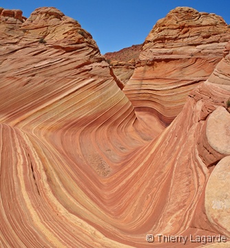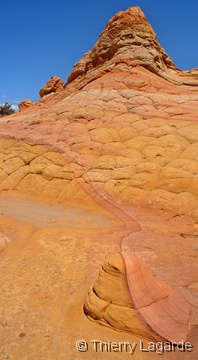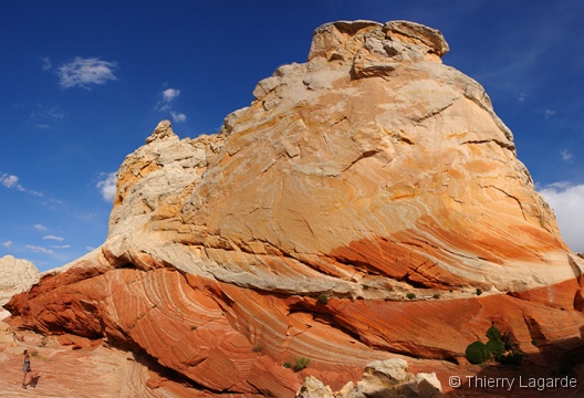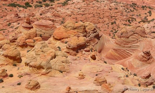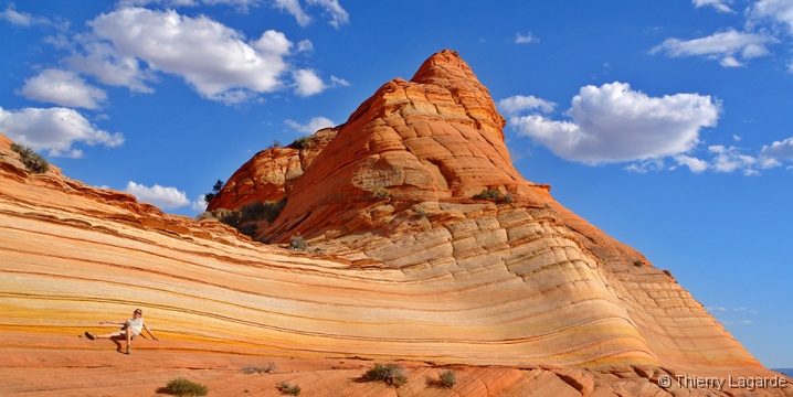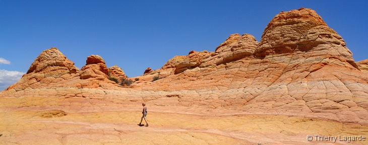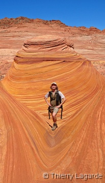 Lysiane est un peu fatiguée et hésite à venir mais se décide finalement et elle ne le regrettera pas car la lumière est exceptionnelle en cette fin d’après midi et le paysage un régal pour les yeux comme le montrent les photos. Les 2km de marche dans les dunes au retour consommeront les dernières forces de Lysiane qui qualifiera cette journée de Schuleresque, terme que seuls les initiés pourront comprendre…. Il est vrai que combiner Coyote Buttes North et Paw Hole constitue au final une grosse journée bien remplie mais avec la satisfaction d’avoir profité à fond de l’endroit |