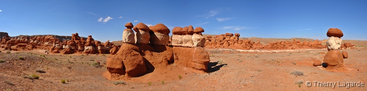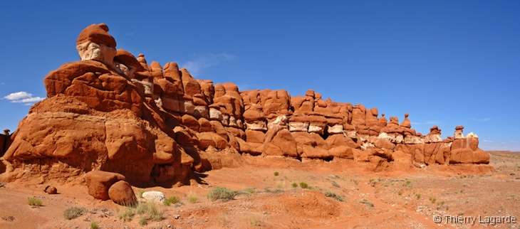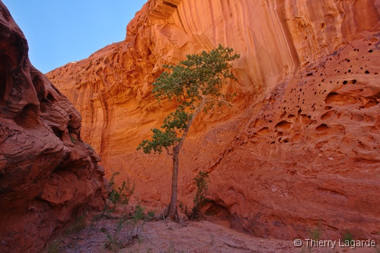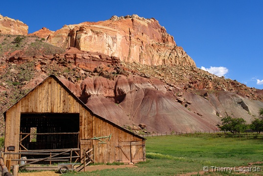 Je proposerais bien une extension à Lysiane avec Arsenic arch puisque la piste est située en face de l’autre côté de la route mais n’ayant pas moi-même été emballé la première fois que j’y suis allé avec Philippe, je doute que Lysiane apprécie. Route donc vers Hanksville véritable bled paumé dans lequel Joy tient un bed et Breakfast dans sa maison. |