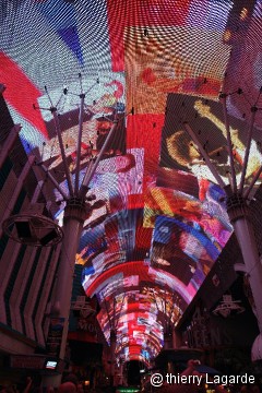 Cette année, Vegas n’étant pas notre tasse de thé, nous fuirons le « new » strip pour préférer le vieux Las Vegas, celui des casinos kitch et des vieilles illuminations. Ce sera donc séance photo de nuit autour de Fremont street et spectacle de lumière sur « we will rock you » de Queen avant de rejoindre la clim salutaire de la chambre et une bonne nuit avant d’attaquer les choses sérieuses le lendemain. |