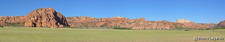 Lever 6h. Le ciel est bien dégagé et le vent de la nuit est tombé. Ce sont donc des conditions idéales pour effectuer un vol. Nous arrivons peu avant 7h à l’aéroport de Saint George et rencontrons notre pilote du jour qui nous montre le plan de vol et c’est parti, direction Kolob Canyons pour revenir ensuite par Snow Canyon. Je suis toutefois resté un peu sur ma faim car nous n'avons pas survolé le canyon principal de Zion (question d'autorisation ?). J'aime bien en effet reconnaître vu d'en haut les endroits visités sur le plancher des vaches et là je n'ai rien reconnu à part Snow Canyon. Mis à part ce détail, les vues sont tout de même impressionnantes et bonne surprise finale, le tarif est deux fois moins élevé que prévu car il facture au temps quelque soit le nombre de personnes à bord (max 3). |