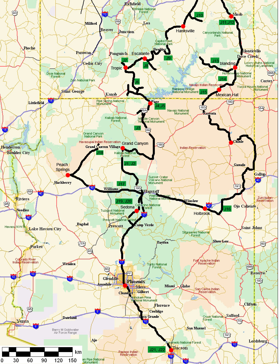 Tuzigoot NM, Montezuma Castle puis route vers Tucson: West Saguaro NP. |
