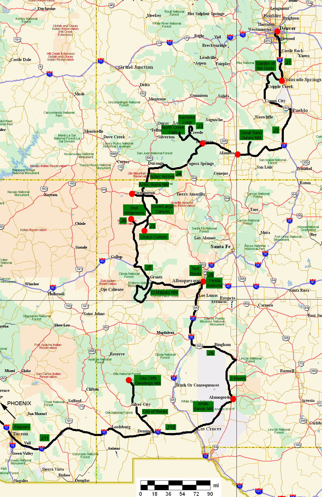 Wolf Creek pass, Treasure Falls, Aztec Ruins NM, Aztec Arches |