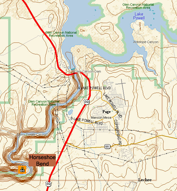 Commentaires: Horse shoe bend n'est qu'un point de vue mais à ne manquer sous aucun prétexte: vous surplombez un des méandres du colorado qui forme un fer à cheval. Un sentier d'environ 1/4h de marche dans le sable mène au point de vue
