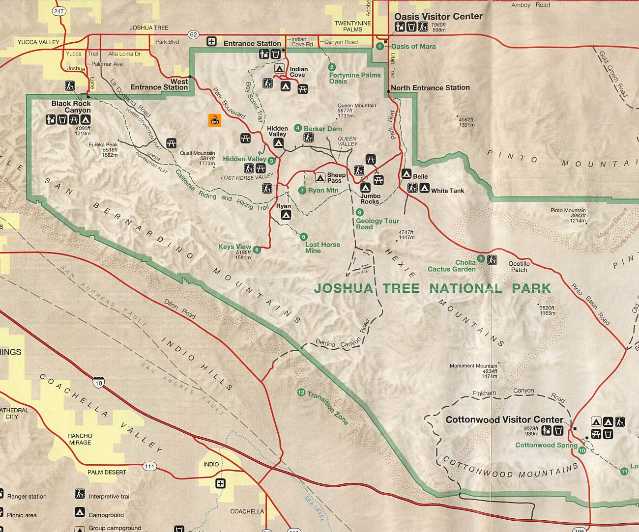 Commentaires: Pour nous qui n'avons fait que traversé le parc, Joshua tree a comme principal intérêts ces fameux arbres de josué si particuliers. Les températures étant extrèmes dans ce parc et l'environnement particulier hostile nous nous sommes contentés de nous arreter qu'à quelques points de vue. Pour ceux qui aiment le camping, il doit être agréable d'y séjourner mais pas pendant les mois d'été trop chauds....