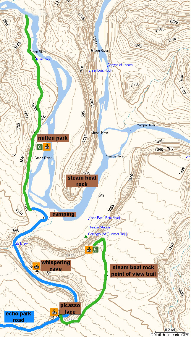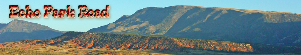Commentaires: L'echo park road ne vous permettra pas seulement d'aller au camping mais surtout d'accéder aux randonnées de mitten park, de pénettrer dans whispering cave, d'apprécier picasso face et fin du fin, monter sur la mesa pour aller au bord de la rim pour contempler steamboat rock en fin d'après midi