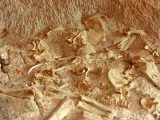 Impressionante carrière d'ossements en tous genres. La profusion s'explique par le fait que la rivière a charrié toutes ces carcasses de dinosaures qui se sont ensuite accumulées au même endroit