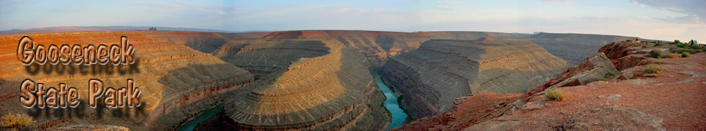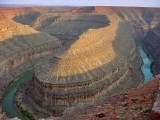 Commentaires: Encore un state park méconnu qui vaut pourtant largement le détour (façon de parler car si vous passez à mexican hat, vous êtesà 15min du parc) bien qu'il ne s'agisse que d'un point de vue. La san juan river illustre parfaitement le mot "gooseneck": trois méandres, à la rondeur parfaite ont creusé pendant des millions d'années trois "cous d'oie". la couleur noire des strates des falaises contraste avec les eaux vertes et boueuses du fleuve.