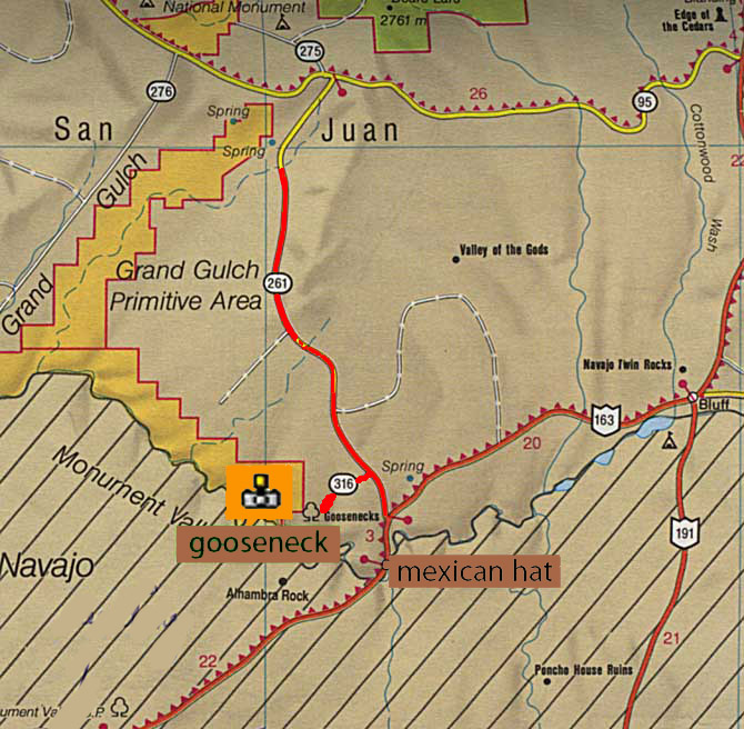Situation: à 10 miles N-O de mexican hat par la route 261 puis 316