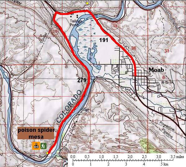 Situation: Quitter Moab par la 191 vers le nord ouest pendant environ 4.2 miles jusqu'à la bifurcation avec la 279 que vous prendrez sur la gauche pendant 6 miles jusqu'au parking du trailhead