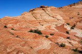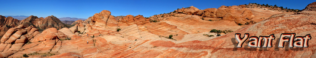 Commentaires: si vous aimez les paysages de brain rocks dans le style de vermillion cliffs national monument , vous aimerez Yant flat qui rappelle un peu White pocket ou le chemin qui mène à The Wave dans Coyote buttes North. A partir du parking, il est préférable de suivre l'ancienne jeep road qui serpente sur le plateau vers le sud. a la fin de jeep road, il suffit de noter le cap du point GPS indiqué sur la carte (bottom) et de le suivre pour arriver assez rapidement à votre terrain d'exploration. le point indiqué 'end' est un point indicatif signalant la fin de notre exploration. comptez minimum 4h en partant de saint george pour explorer sans trop se presser (nous avons parcourus pour notre part 8km à partir du parking).