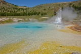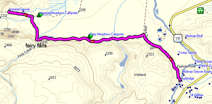 Il s'agit ni plus ni moins pour moi de la randonnée dans l'ouest avec le meilleur rapport plaisir/effort. En effet, la randonné très facile permet d'admirer fairy falls, très belle chute de 197 pieds, Impérial Geyser (rajoute 2.5 km A/R) avec ses couleurs magnifiques et sur le chemin vous aurez également la possibilité (je n'ai pas mis les photos sur cette page mais sur celle consacrée à Midway Geyser Basin) de grimper sur les collines (des chemins sont facilement repérables sur la gauche du sentier) pour admirer avec une vue quelque peu aérienne une des plus belles pool du monde: Grand Prismatic Spring. Attention, le parking, situé à 1mile au sud de celui de Midway Geyser Basin est très petit et bondé en permanence. |